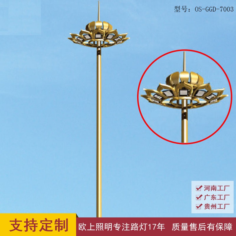 高杆灯常用的高度是15米、18米、20米、25米、30米这5种规格。其他的高度一般都是根据客户要求设计的,这个也就是我们通常所说的按高度来划分的高杆灯。