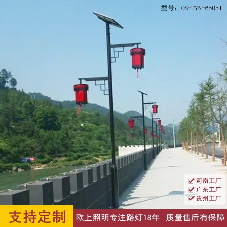 1.在生产太阳能路灯时,我们可以根据客户需要的参数配置来制作,如灯杆高度、光源瓦数、太阳光伏板尺寸、锂电池容量大小、阴雨天亮灯时长等等,都可以满足不同客户不同的需求。另外,还可以结合各地特有的民族文化风情来进行特色定制,并加上中国结、灯笼、国旗等装饰挂件。只要您能想到,我们就能做到!